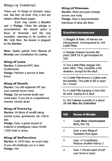 In this module you will find the 7-Room Council of Nivendar, a lich long dead. His worshipers bind themselves to the 10 Rings of Torment. Challenge yourself with his Tribulations, and gain his great boons of necrotic power!
